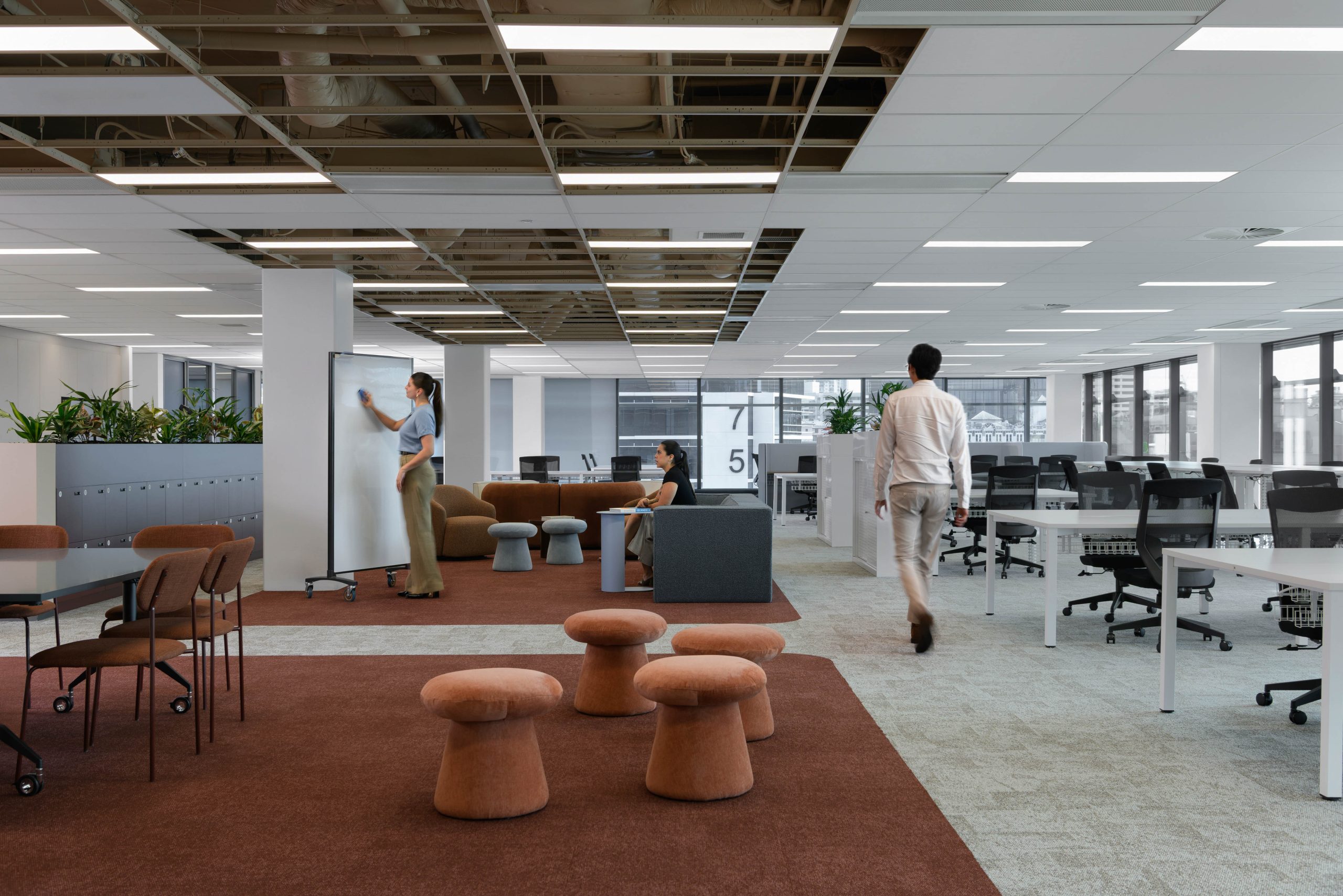 The brief called for a smart, commercially considered upgrade that prioritised reuse of existing infrastructure, reducing waste while reinforcing Centuria’s commitment to thoughtfully curated, future-ready workplaces designed to evolve with diverse tenant needs.