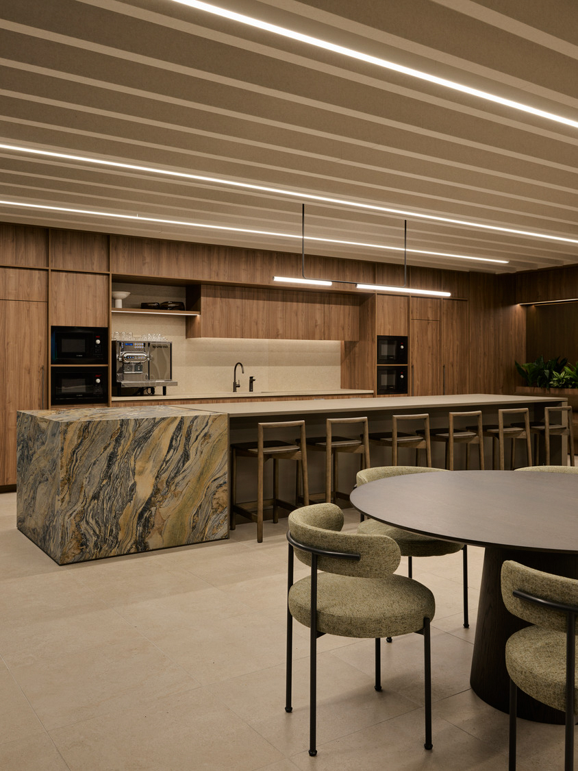 Upon arrival, clients are met with a high-impact front-of-house. Framed views, precision detailing and curated materials project confidence, credibility and commercial scale. It’s an environment built to close deals and set the tone for success.
