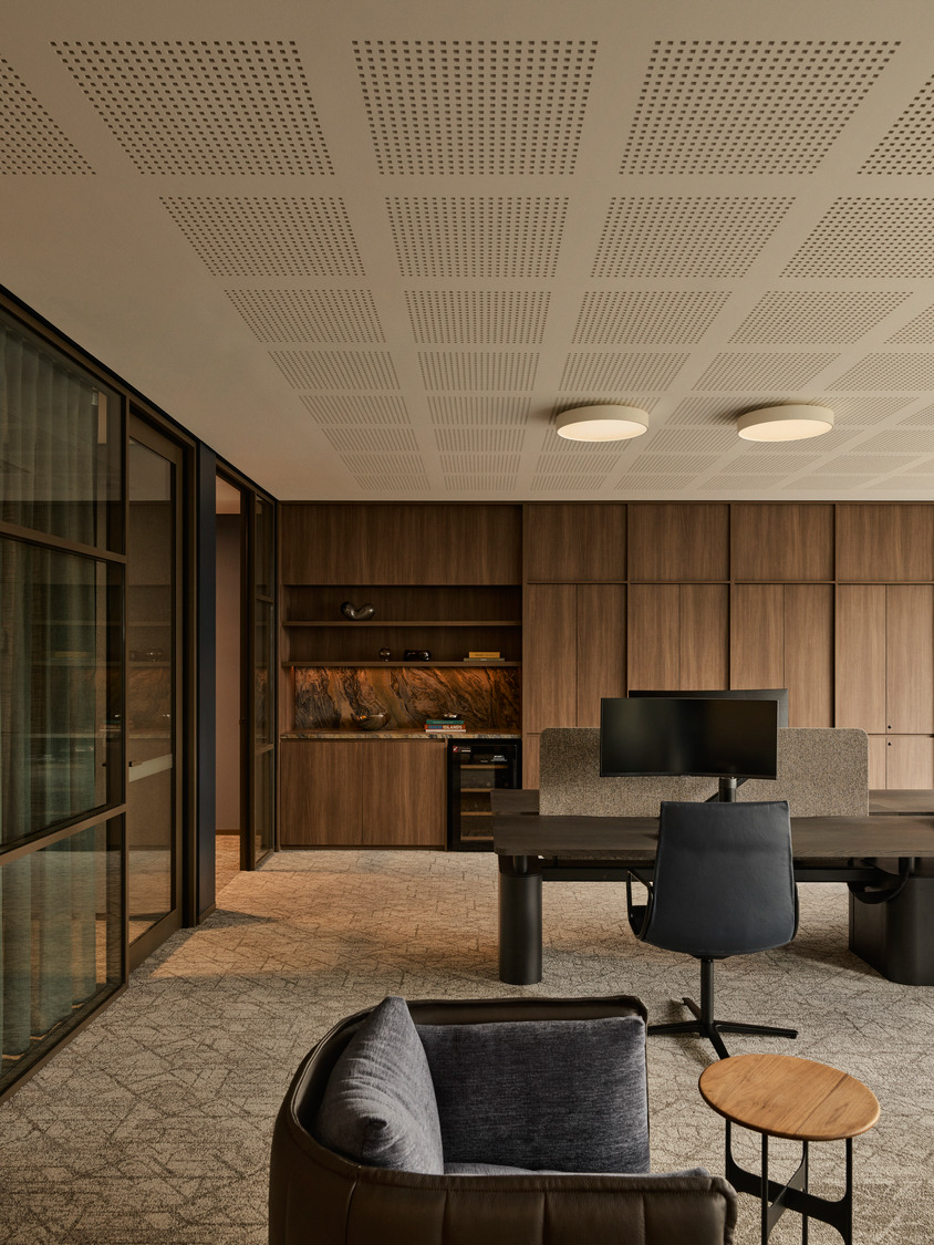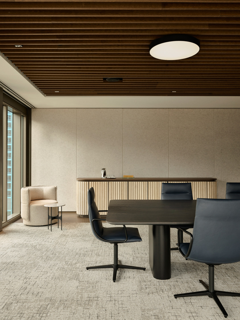 Rich, layered finishes, acoustic tuning and ambient lighting deliver not just comfort but a sense of gravitas. It feels like a place where big things happen.